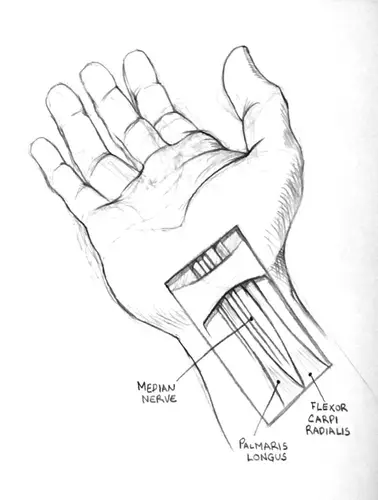 A sensation of a light electrical shock may occur by tapping gently over the palm-side of the wrist.