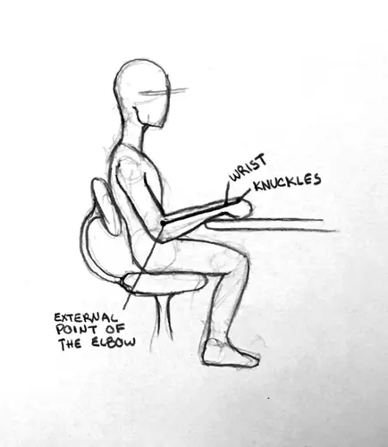 By positioning your chair or desk at a level in which the knuckles, the top part of the wrist and the external part of the elbow are aligned, the wrist will rest in a natural position avoiding extra pressure and minimizing the chances of inflammation.